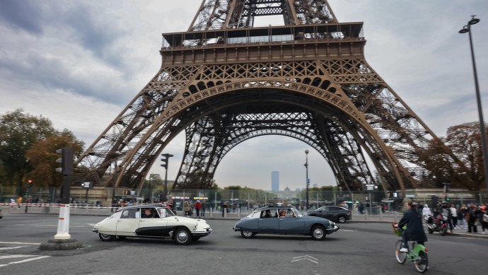 Louvre, Opera, Notre-Dame – und dann entlang der Seine am Eiffelturm vorbei: Göttin sei Dank haben Kameras heute keine Begrenzung an Foto-Kapazität mehr wie in den Zeiten der DS-Produktion bis 1975. Bei ihrer Ausfahrt durch die Stadt der Liebe kennt die fotografische Zuneigung der Fans zum aerodynamischen Trendsetter darum keine Grenzen. Und ganz in Ruhe können die Besucher und Besitzer nach dem glanzvollen Auftritt in der Stadt am historischen Ort ihrer Entstehung den Limousinen nahekommen: dem Parc André Citroën.