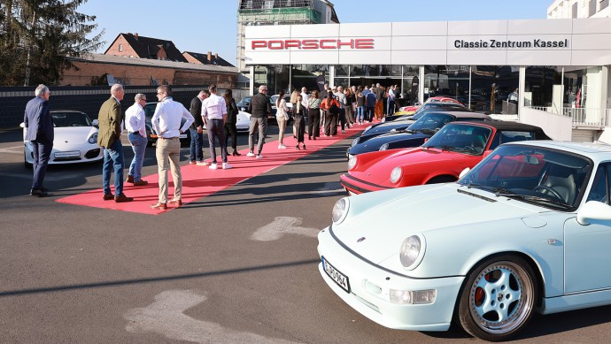 Die Eröffnungsfeier selbst war als Erlebnis inszeniert. Eine schwebende Porsche-Targa-Karosserie empfing die Gäste am Eingang und schlug zugleich die Brücke zum ersten offiziellen Porsche Classic Zentrum in Deutschland, das die Glinicke Gruppe im vergangenen Jahr eröffnet hatte (wir berichteten). Führungen durch das Haus, Musik, Kulinarik und eine Ausstellung exklusiver Sondermodelle rundeten den Abend ab.