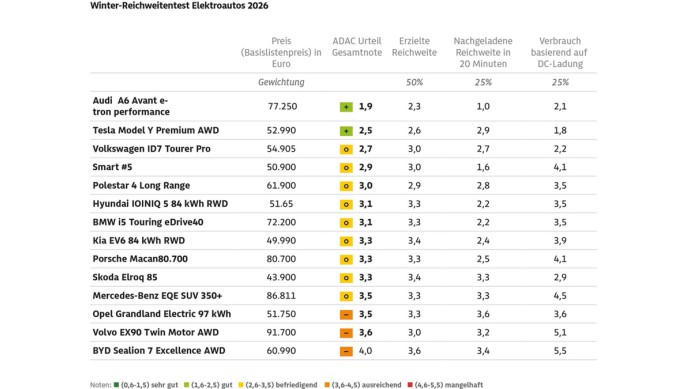 ADAC Wintertest E-Reichweite (2026)