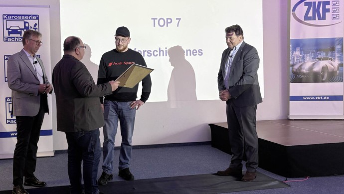 Erstmalig wird der ZKF durch seine Stiftung des Deutschen Stellmacher- und Karosseriebau-Handwerks ein Stipendium an den begabten Landes- und Kammersieger Baden-Württemberg des Jahres 2025 im Karosserie- und Fahrzeugbauerhandwerk, Vatan Karan Hotza (Stuttgart), vergeben. Diese Zuwendung soll der Begabtenförderung dienen und unterstütze Stipendiaten bei den Kosten der Meisterausbildung. "Wir müssen junge Menschen für den Beruf des Karosserie- und Fahrzeugbaumechanikers begeistern und diese auch für die zukünftigen anspruchsvollen Tätigkeiten an modernen Fahrzeugen entsprechend fördern. Am Thema Ausbildung müssen wir alle arbeiten – Betriebe, Innungen, Landesverbände sowie der Zentralverband", konstatierte Arndt Hürter, der auch Vorsitzender der Stiftung ist.