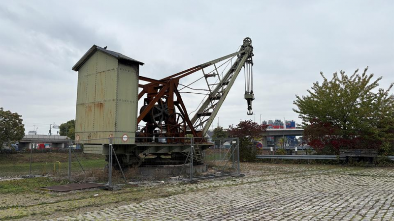 An diesem Kran am Mannheimer Hafen wurde der mutmaßliche Amokfahrer festgenommen. Er hatte sich im Drehkranz versteckt.