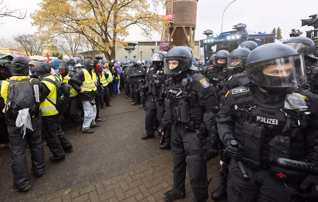 Proteste in GießenBildrechte: picture alliance/dpa | Boris RoesslerDie Gründung war von Protesten Tausender begleitet worden, was zur Folge hatte, dass der Kongress erst mit stundenlanger Verspätung beginnen konnte. Vor der Messehalle hatte sich Widerstand aus Politik und Zivilgesellschaft formiert. Reporter berichteten zudem, zahlreiche Personen hätten versucht, die Polizeiabsperrungen zum Veranstaltungsort zu durchbrechen. Sie seien mit Wasserwerfern zurückgedrängt worden. Die Polizei sprach von insgesamt 25.000 bis 30.000 Demonstranten.