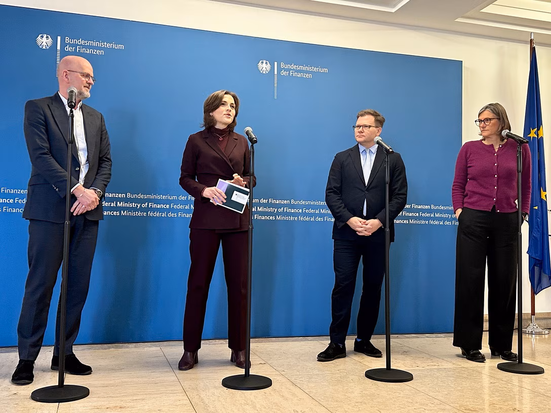 Äußern sich zur Lage der Autoindustrie in Ostdeutschland (von links nach rechts): Andreas Rade, Geschäftsführer beim Verband der Automobilindustrie (VDA), Ostbeauftragte Elisabeth Kaiser (SPD), Bundesumweltminister Carsten Schneider (SPD) und Christiane Benner, Erste Vorsitzende der IG Metall. Bildrechte: picture alliance/dpa | Martina HerzogAm sogenannten Branchendialog Automobil nahmen am Mittwoch Vertreter von Industrie, Gewerkschaften, Bund und Ländern teil. Eingeladen hatte die Ostbeauftragten der Bundesregierung, Elisabeth Kaiser (SPD).
