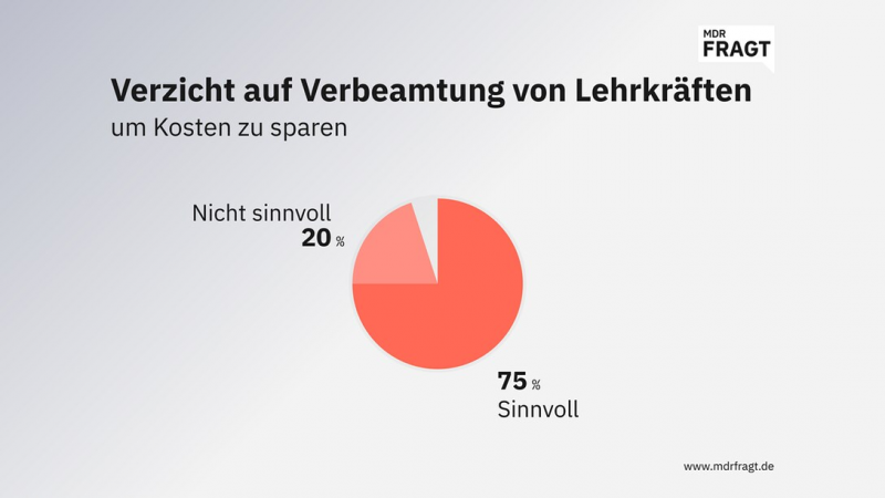 Bildrechte: MITTELDEUTSCHER RUNDFUNKAuch bei dieser Frage zeigen sich je nach Alter der Befragten erneut Unterschiede im Antwortverhalten. So halten die älteren Befragten den Vorschlag, Lehrkräfte aus Kostengründen künftig nicht mehr zu verbeamten, eher für sinnvoll, als es bei den jüngeren Befragten der Fall ist.
