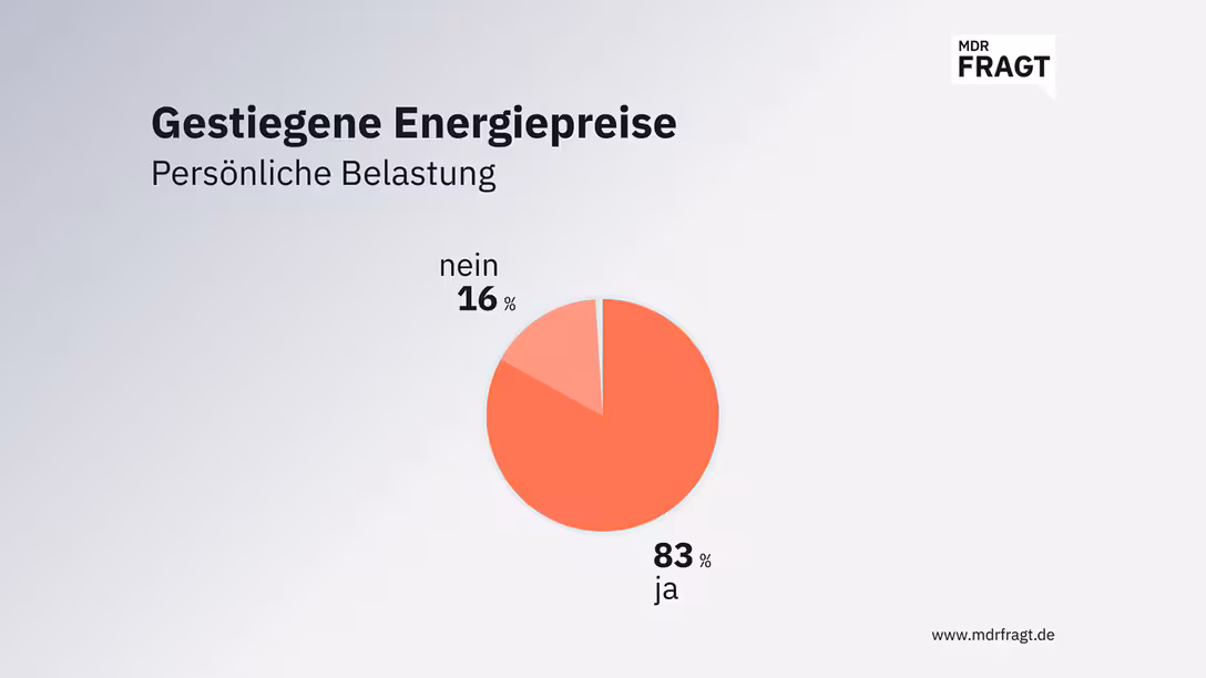 4 von 5 Teilnehmern (83 Prozent) an der aktuellen Befragung geben an, die zuletzt gestiegenen Energiepreise belasteten sie persönlich.